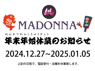 2024年12月27日(金)~2025年1月5日(日)まで、休業とさせていただきます。