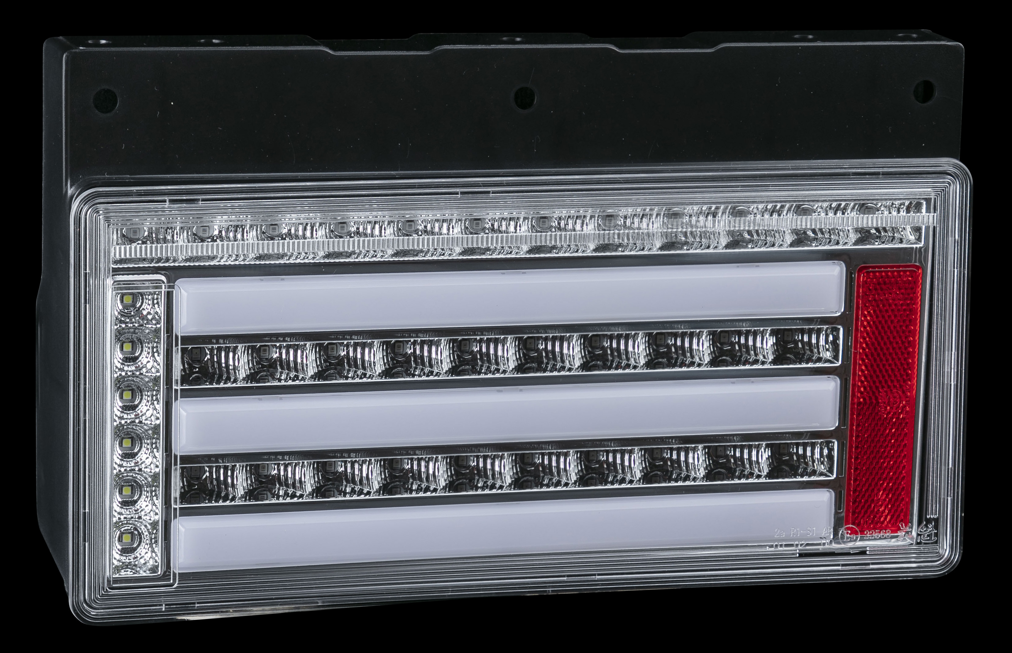 片側スモールに3LEDライトバー、ブレーキに20LED、ウインカーに12LED、バックランプに6LED。 LEDライトバーによる点灯が幻想的なリアビューを演出し、スタイリッシュに彩ります。 スモール/ブレーキ、ウインカー、バックランプ全てに高輝度LEDを採用したオールLEDモデル。 ブレーキランプは高輝度LED直接照射仕様。視認性抜群。 バックランプは明るさ純正比130%!夜間後退時、抜群の視認性を発揮。