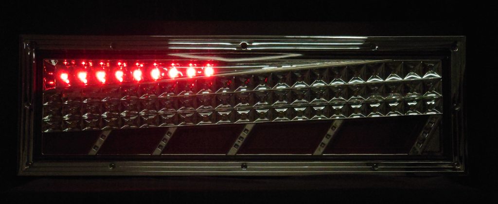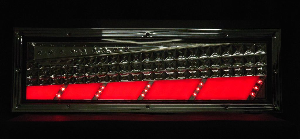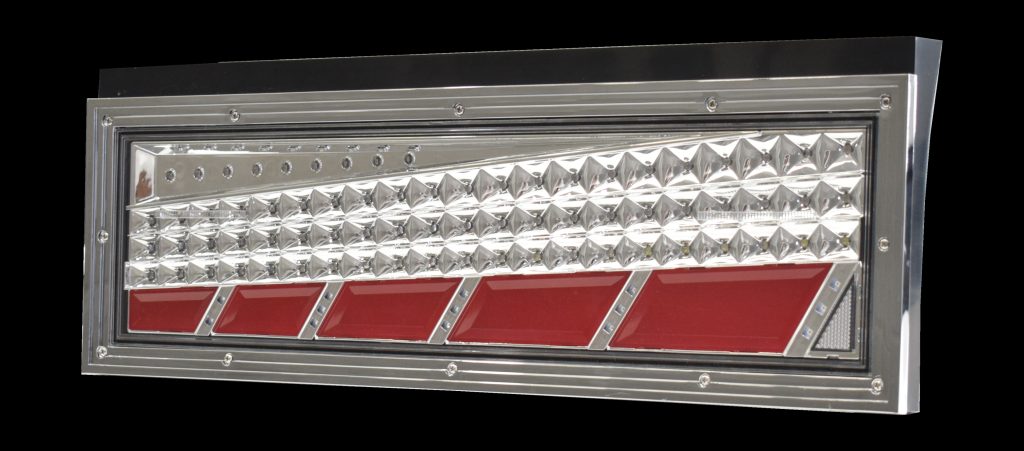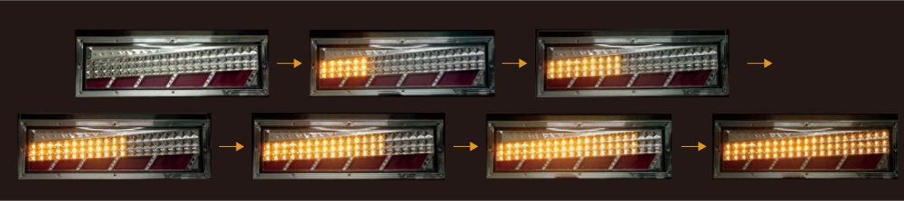 スモール/ブレーキ、ウインカー、バックランプを搭載した大型車用迫力サイズのオールインワンモデル! シーケンシャルウインカー(流れるウインカー)を搭載。
