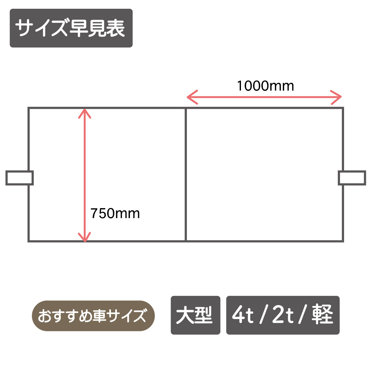 サイズ(おすすめ車サイズ) | ベッドリア・サイドカーテン : 横1000mm x 縦750mm(大型・4t / 2t / 軽) |